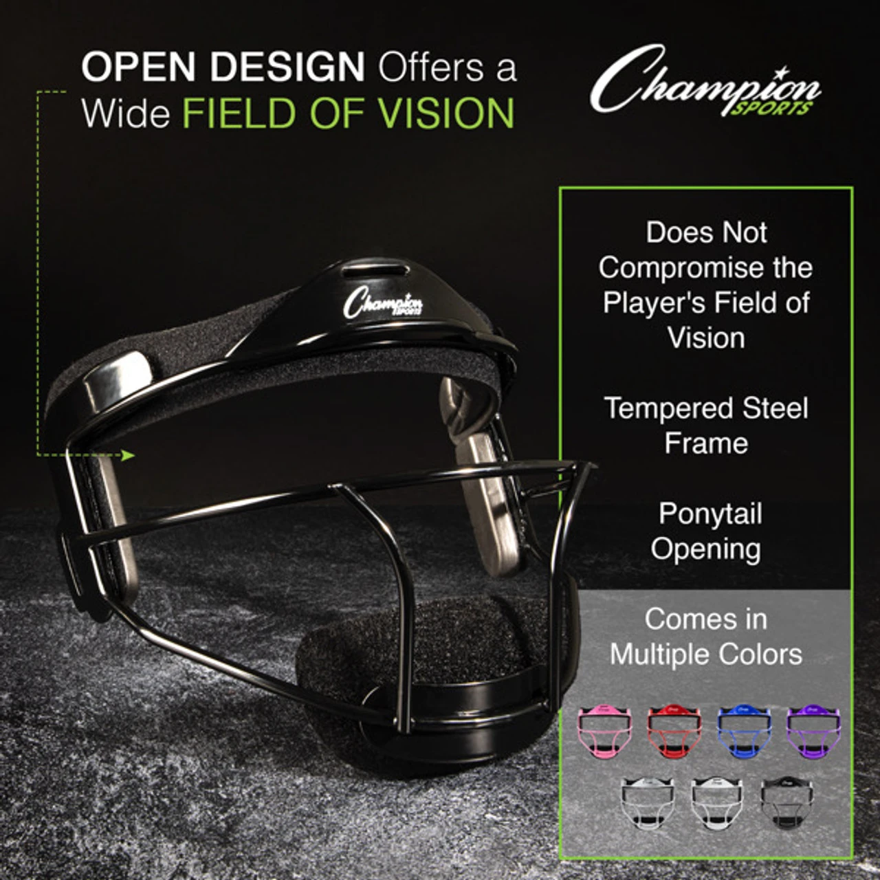 Featuring a lightweight open design, the Champion Sports Youth Softball Fielder’s Face Mask offers valuable protection without compromising the player’s field of vision. The youth fielder’s mask has an adjustable harness and movable chin cup to ensure a snug, customized fit. A liner keeps the mask comfortable to wear during long games, and it can be easily removed when needed between innings or catches.