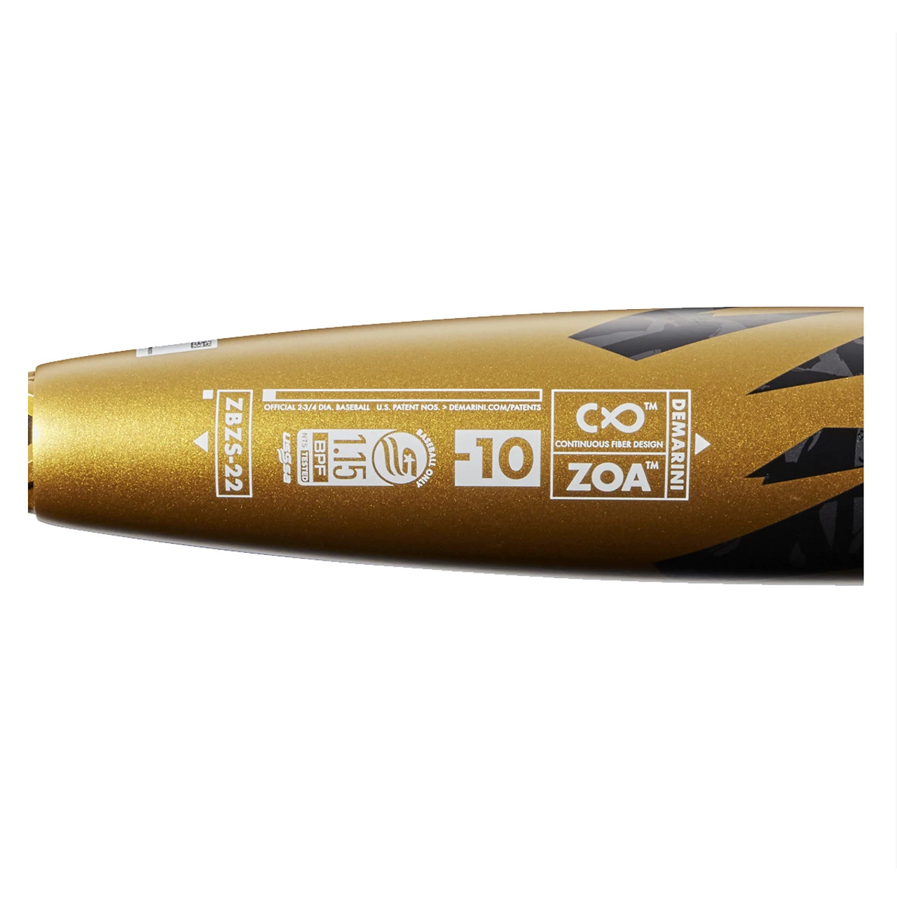 System override. Introducing the 2022 DeMarini Zoa (-10) USSSA Baseball Bat, a bold addition to the composite USSSA lineup. Zoa (-10), designed for travel ball players who prefer the feel of composite, brings DeMarini’s Continuous Fiber Composite Barrel technology to the USSSA game. Through its technologically advanced construction process, Continuous Fiber Composite offers an elongated barrel profile and larger optimized hitting area, leading to more consistent solid contact at the plate. The stiff composite material maximizes energy transfer on contact, allowing the 2022 Zoa to deliver extreme consistency and performance.