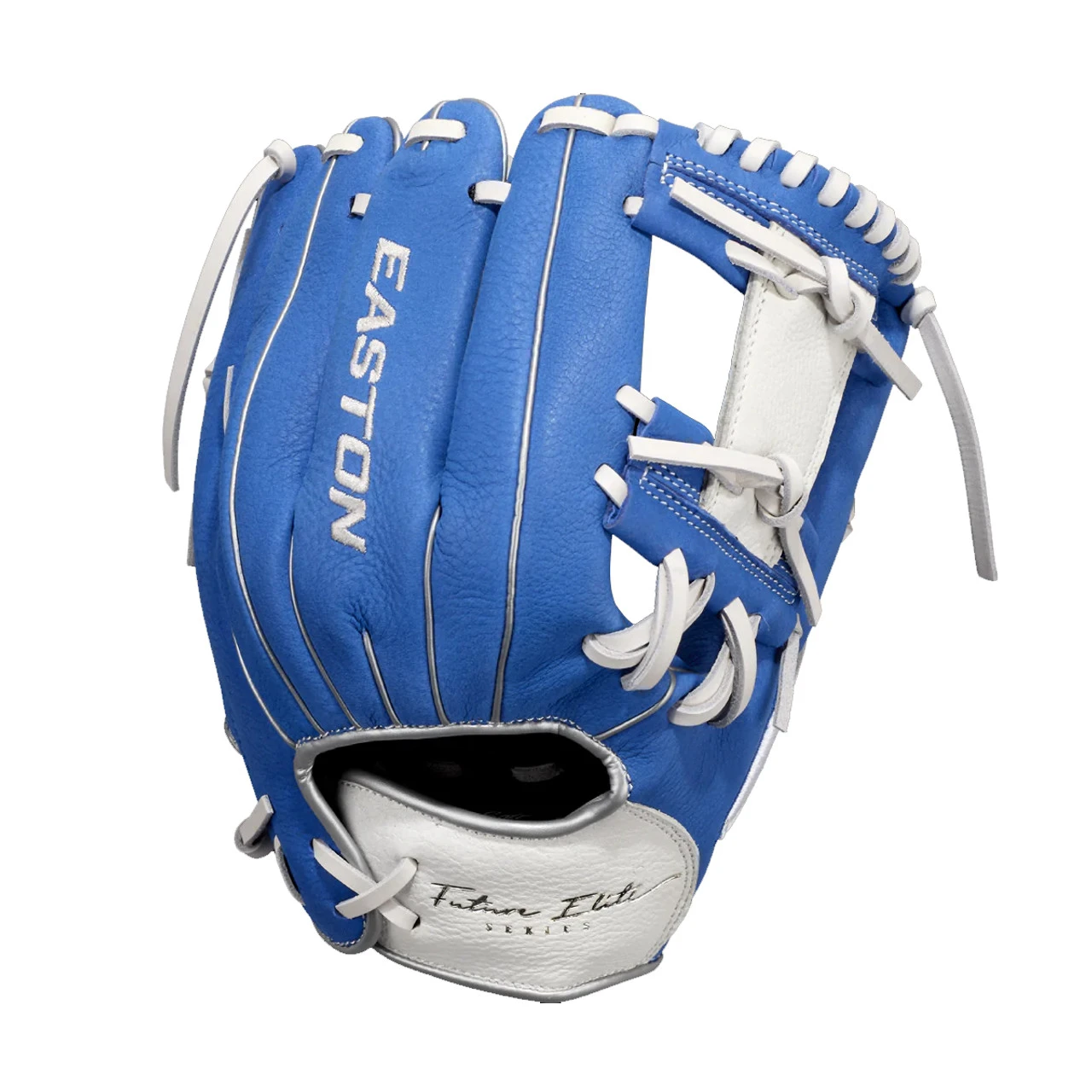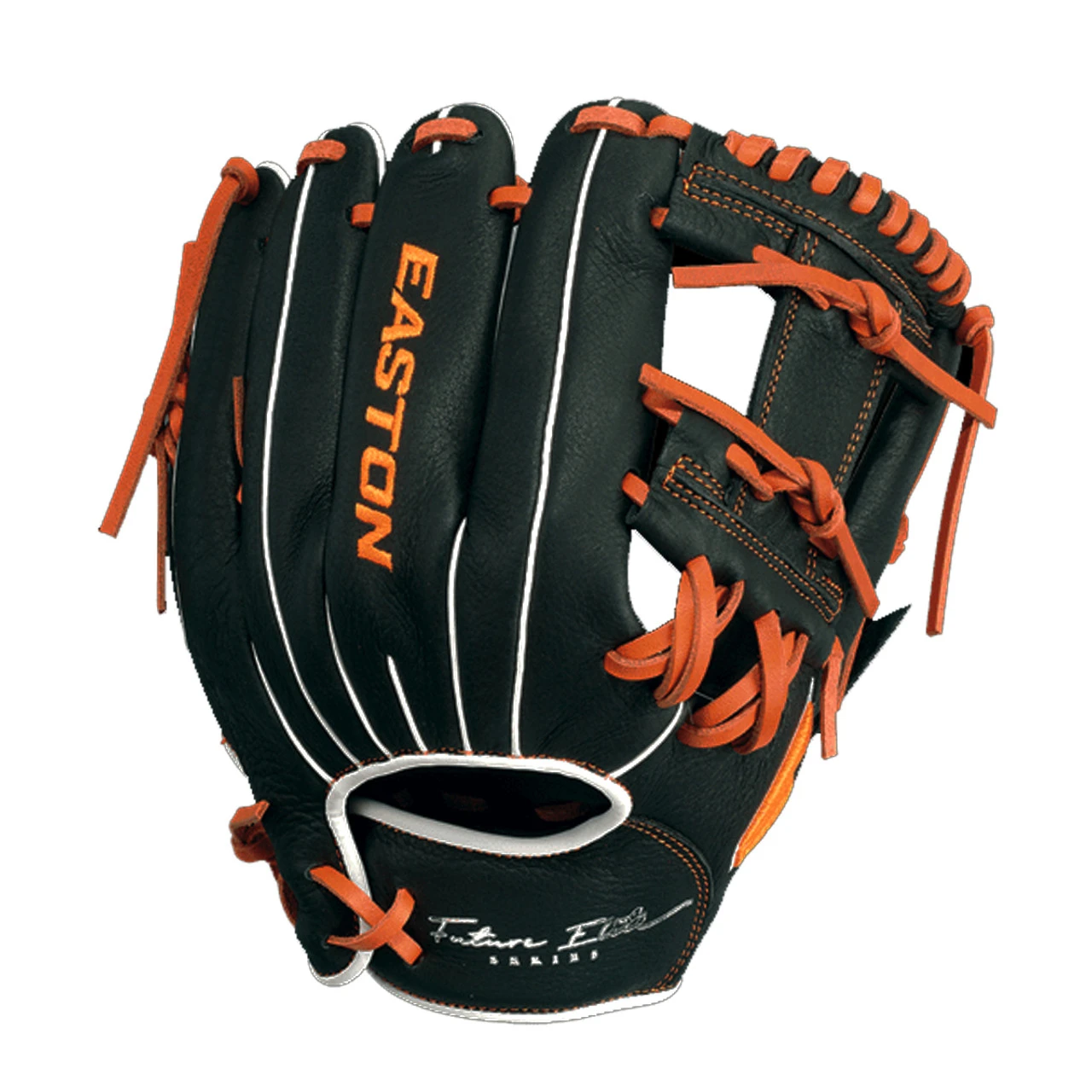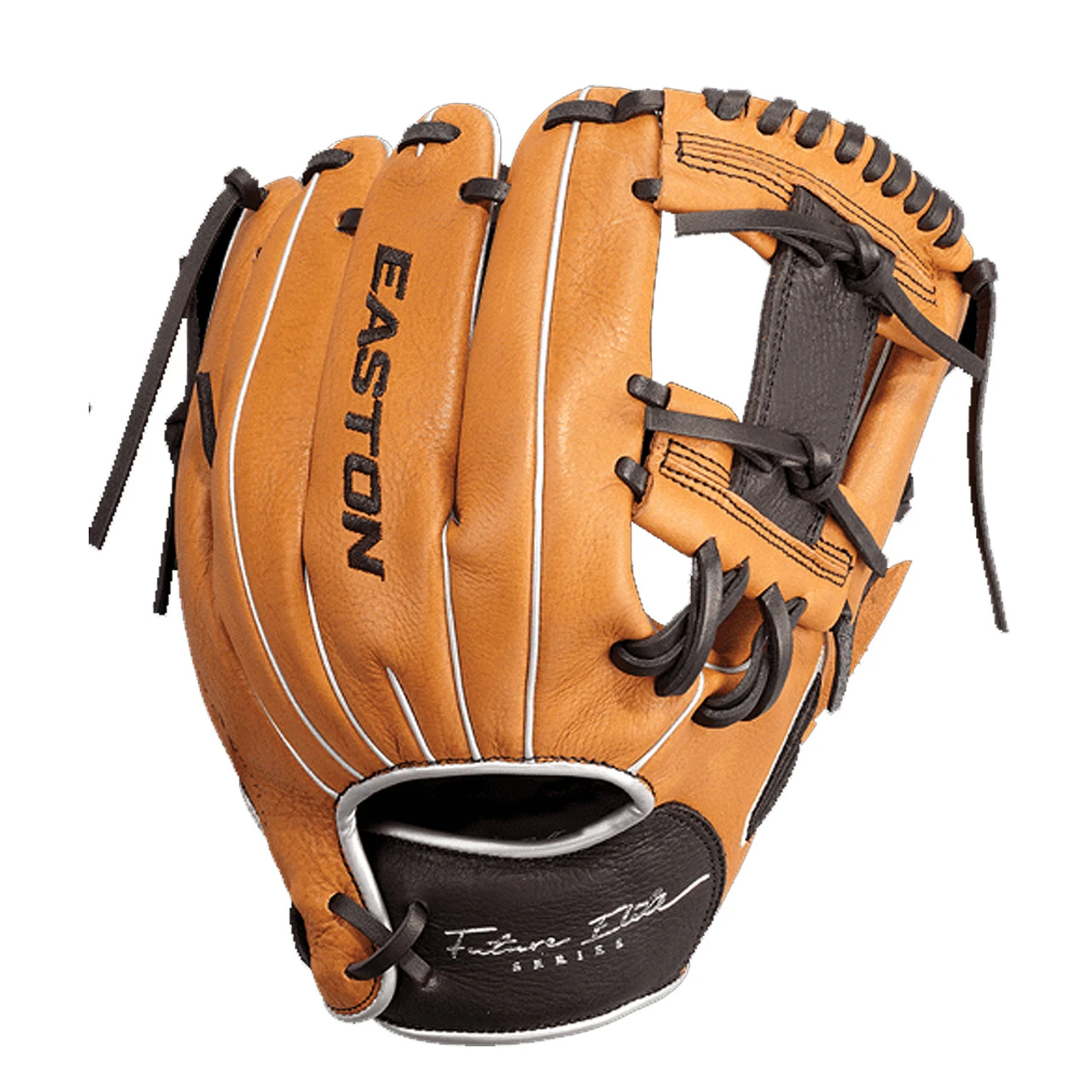Easton’s all-new Future Elite Series was specifically design for the 11u youth player. Game-ready Select Cowhideâ„¢ palm and web, genuine rawhide lace and a super soft palm lining make the Future Elite an easy glove to break in and last through the entire season. The Ideal Fit Systemâ„¢ is designed with a pro-style open back and an easy, on-the fly, adjustable custom fit. Simply pull the laces to tighten the hand opening and re-tie the knot. The re-positioned pinkie loop also allows for two fingers in the pinkie stall.Â