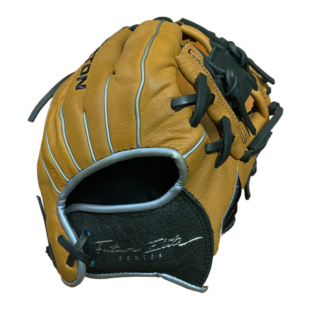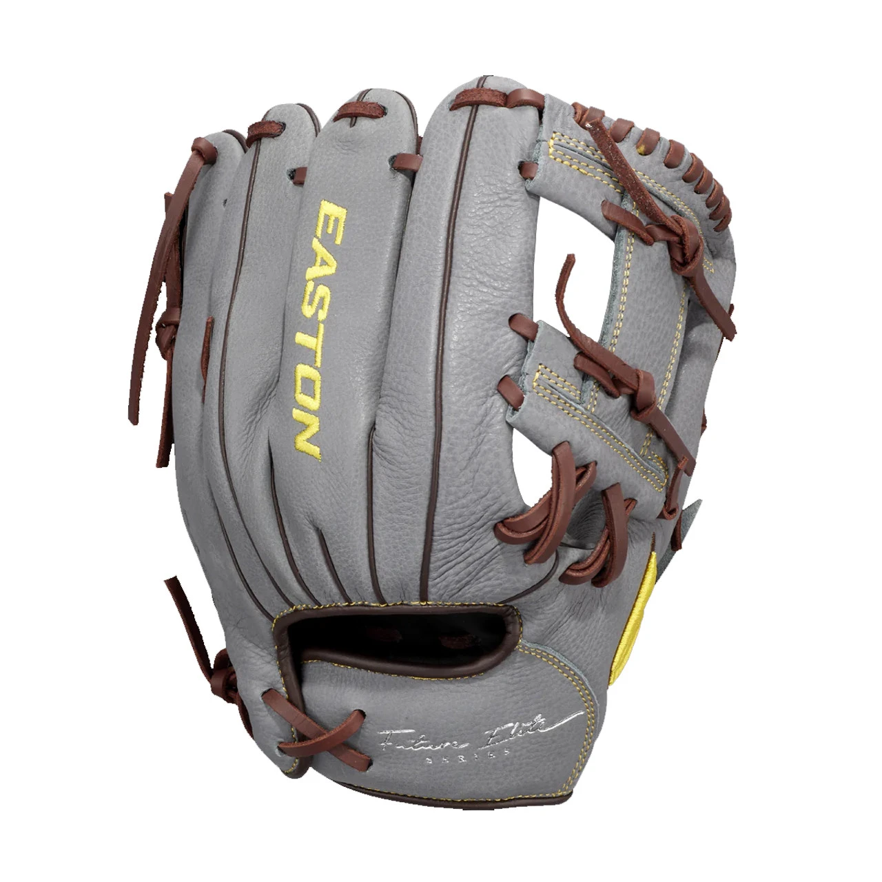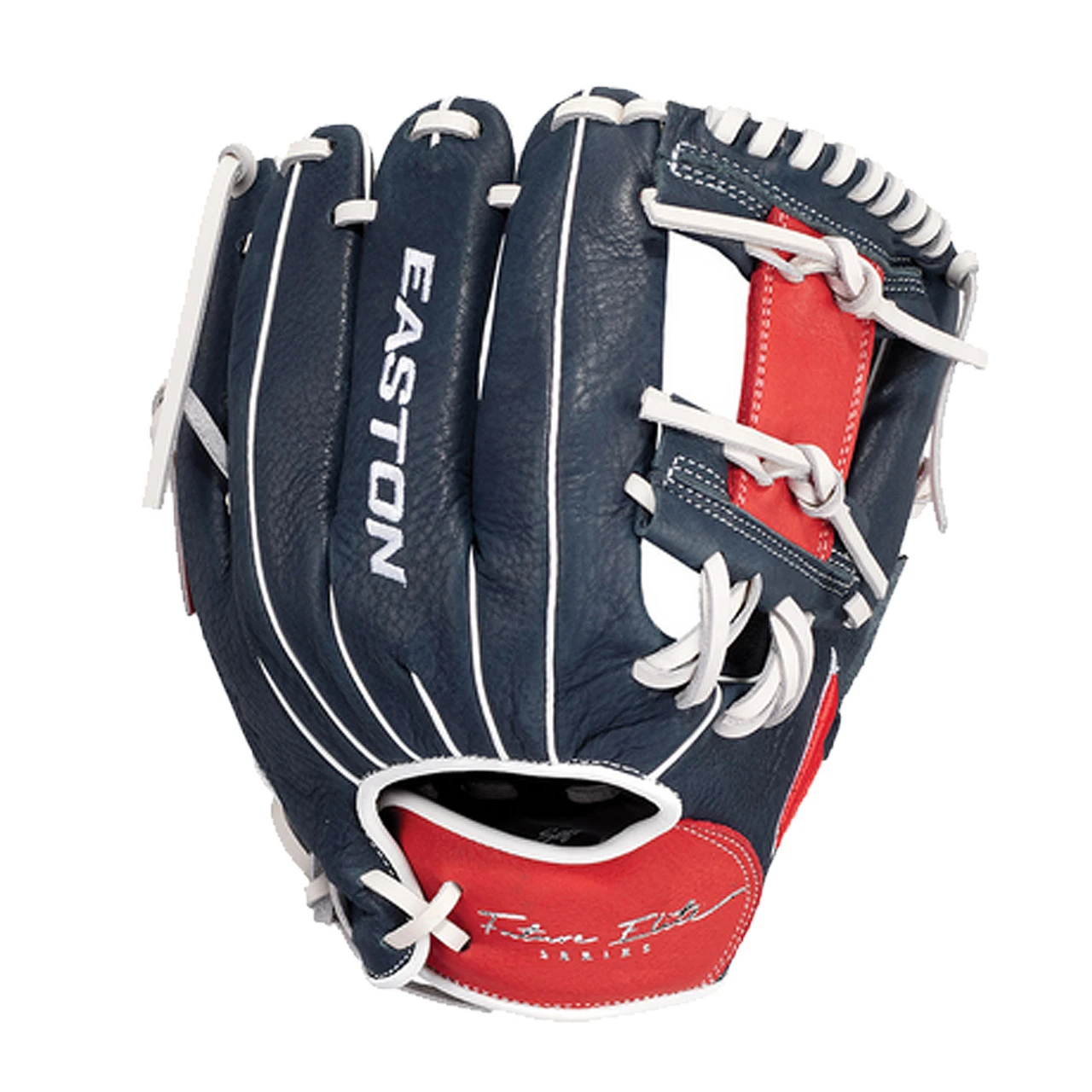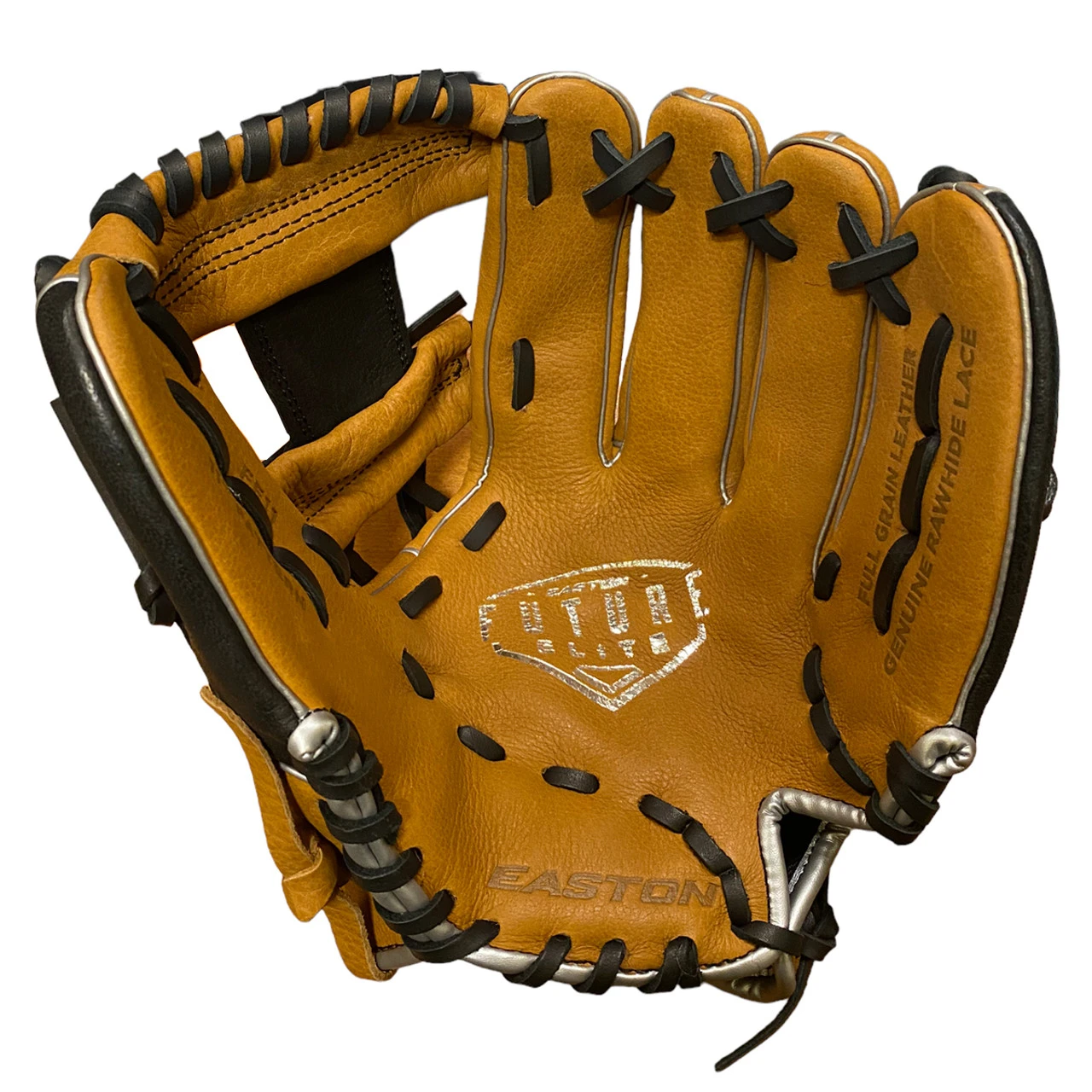 Easton’s all-new Future Elite Series was specifically design for the 11u youth player. Game-ready Select Cowhideâ„¢ palm and web, genuine rawhide lace and a super soft palm lining make the Future Elite an easy glove to break in and last through the entire season. The Ideal Fit Systemâ„¢ is designed with a pro-style open back and an easy, on-the fly, adjustable custom fit. Simply pull the laces to tighten the hand opening and re-tie the knot. The re-positioned pinkie loop also allows for two fingers in the pinkie stall.Â