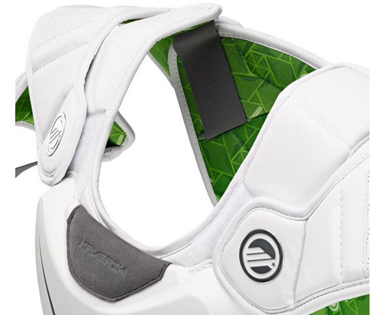 The Maveirk M5 EKG mens lacrosse shoulder pad provides high-level protection with Maverik’s External Kardiac Guard (EKG) and extra shoulder and arm protection. This shoulder pad meets the new NOCSAE performance standard ND200 to help address commotio cordis. Our Pro’s are impressed with the lightweight, comfortable and protective shoulder coverage that this pad provides.