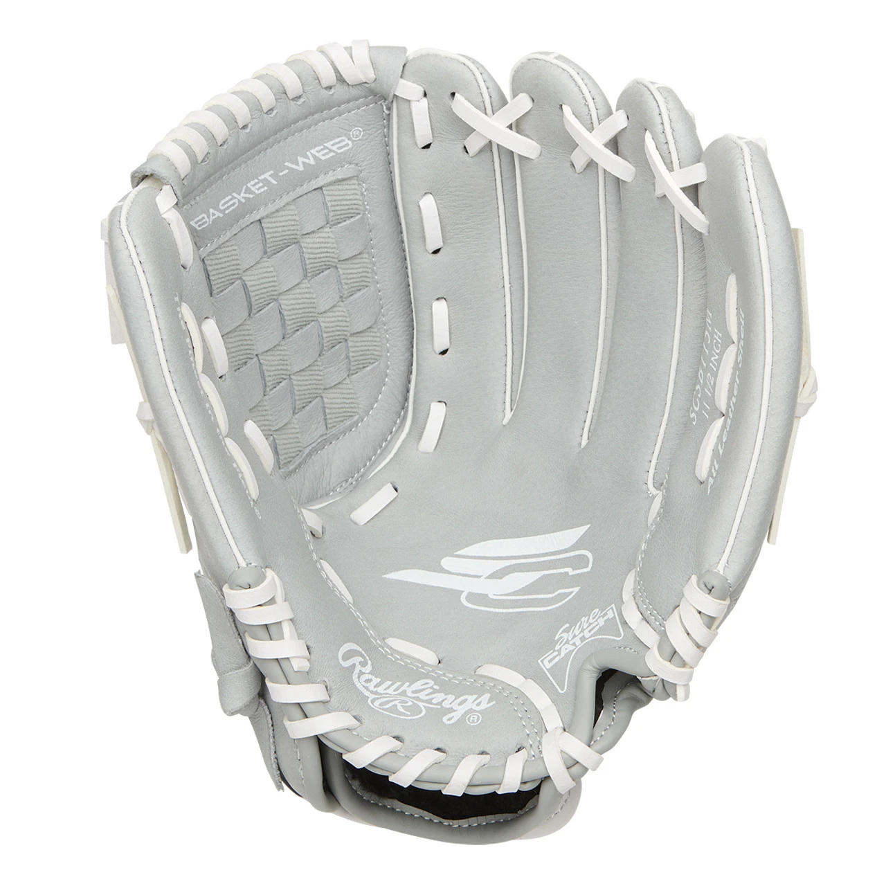 The Rawlings Sure Catchâ„¢ Softball youth glove series is constructed with a soft, all-leather shell for enhanced durability and pocket shape retention. Its Sure Catch heel cut out design allows for a quick and easy close while the Basket web creates a flexible, ball-snagging pocket making it perfect for young athletes who need a glove that’s game-ready off the shelf. Additionally, the cushioned finger linings offers added comfort and features a Velcro wrist strap for a custom fit.